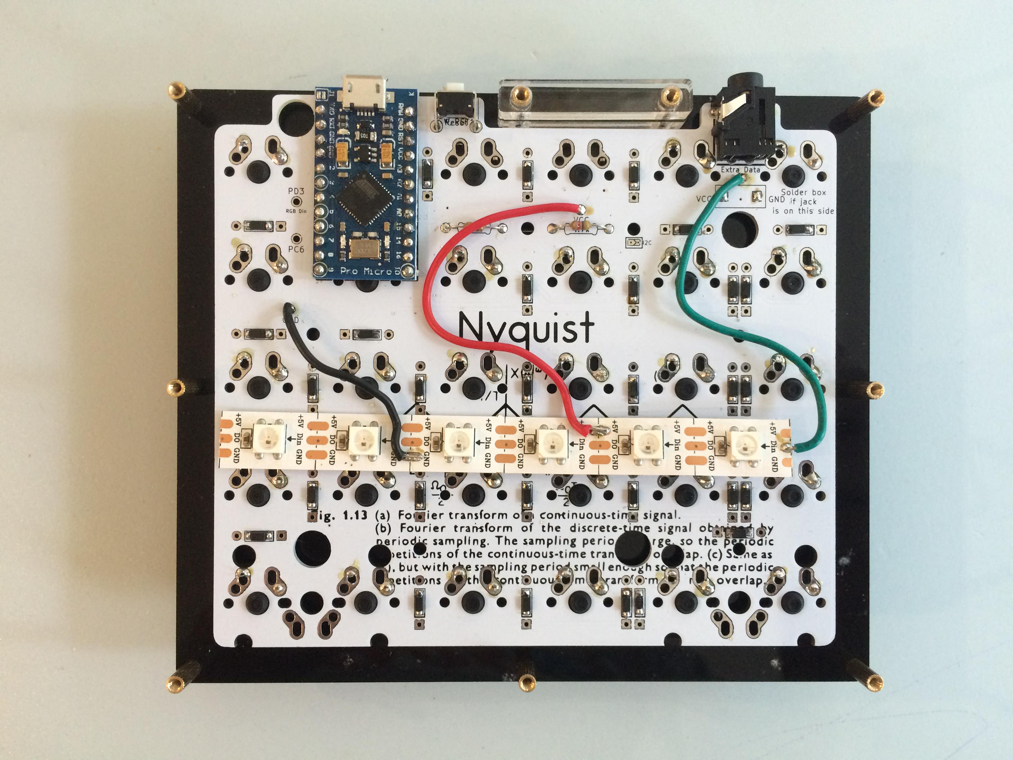 - TX0 Pin on Pro Micro --> Din on master strip --> Dout on master strip --> Extra data line of TRRS cable --> Din on slave strip