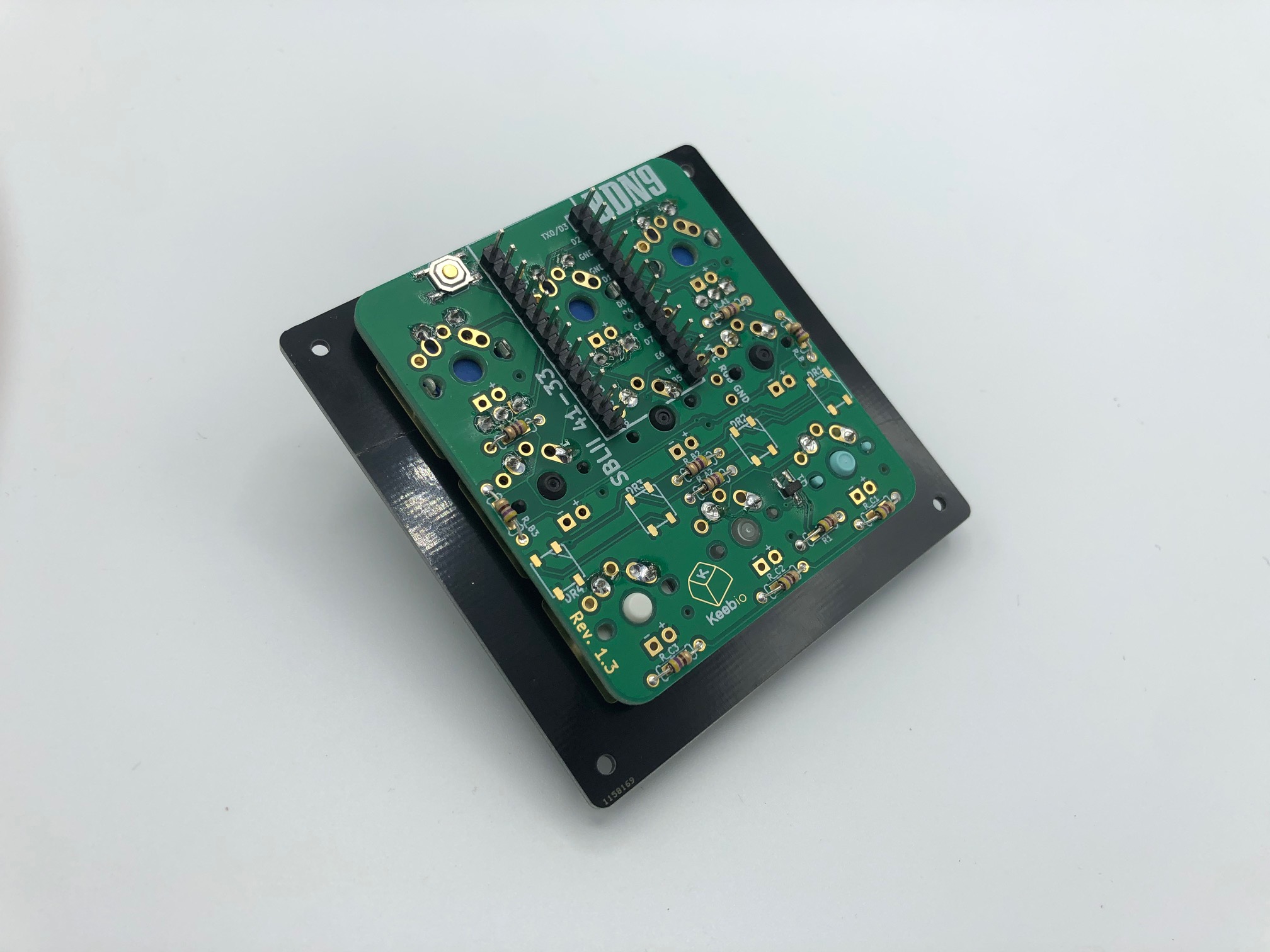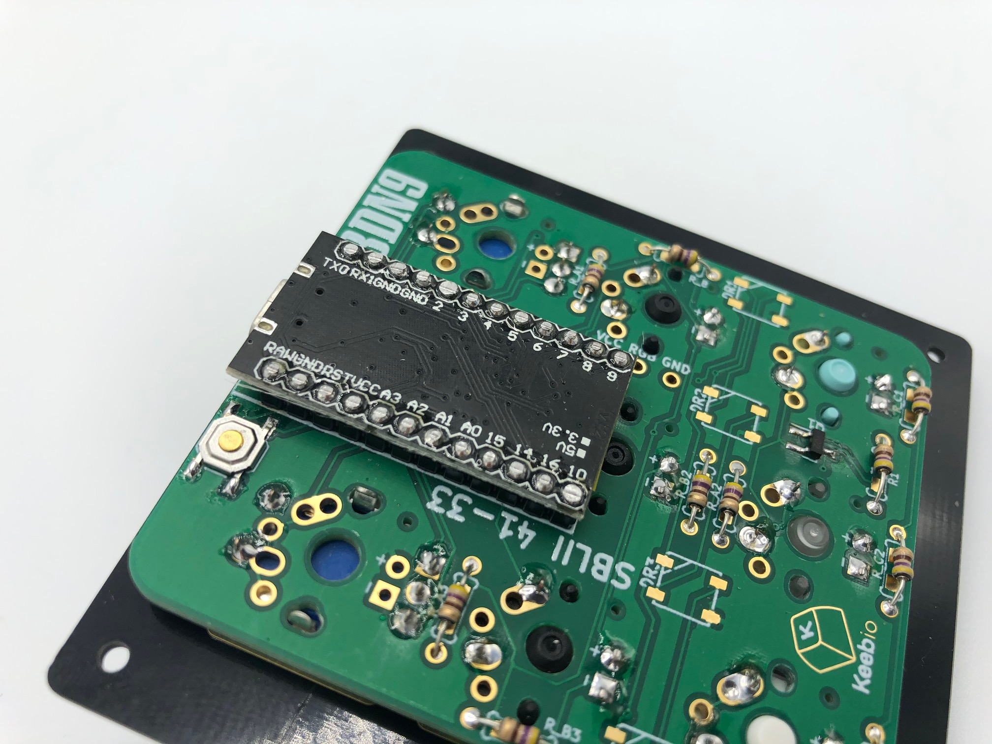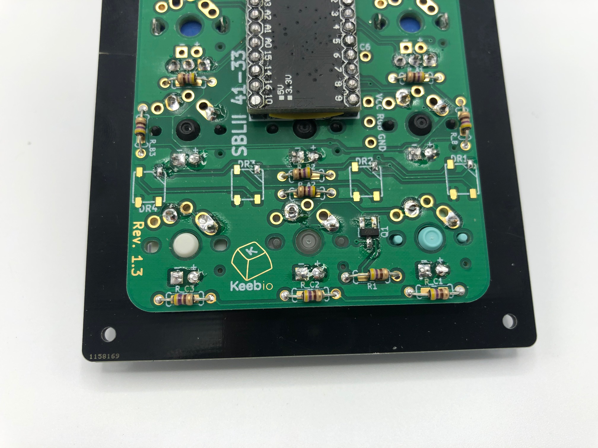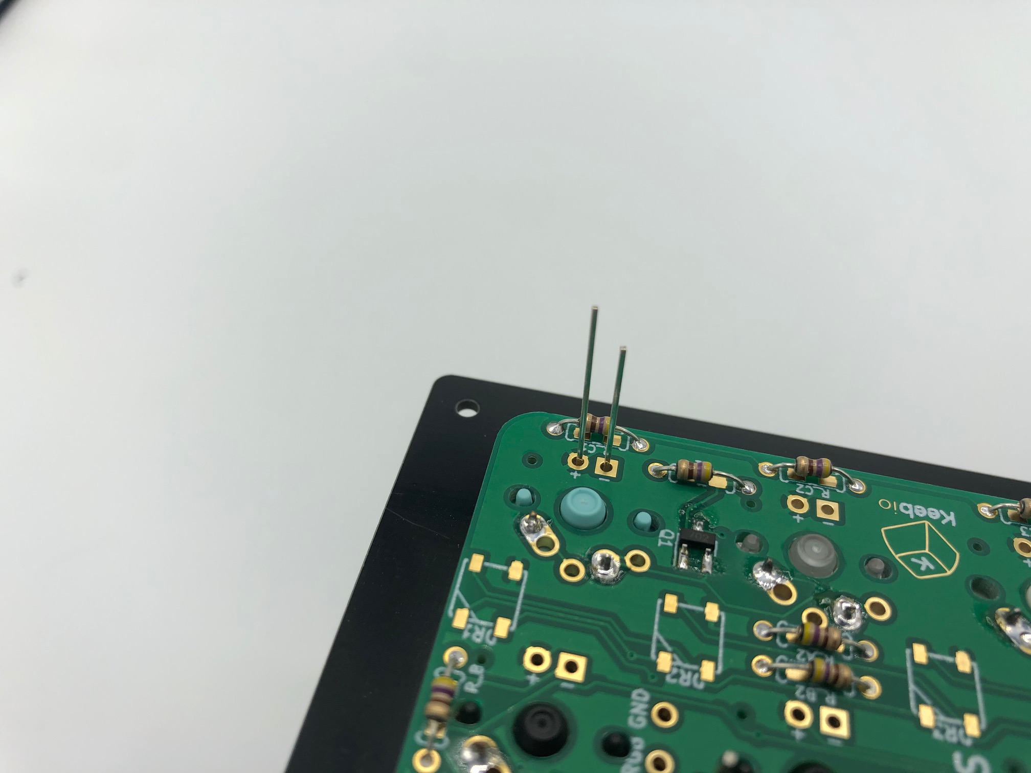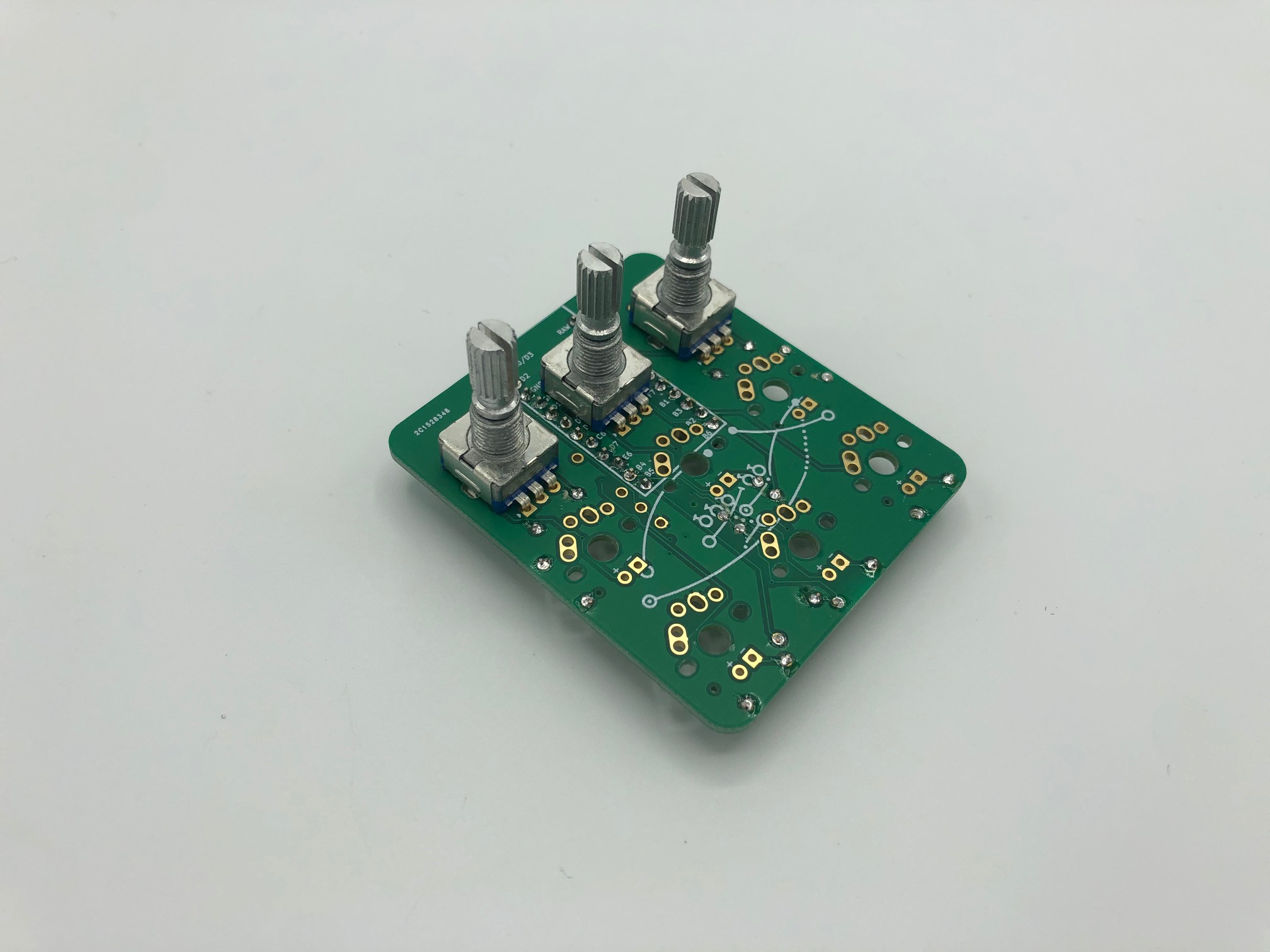 It is difficult to put in the rotary encoders into the PCB pads if the switch plate and switches are already on, so make sure you add the encoders first.