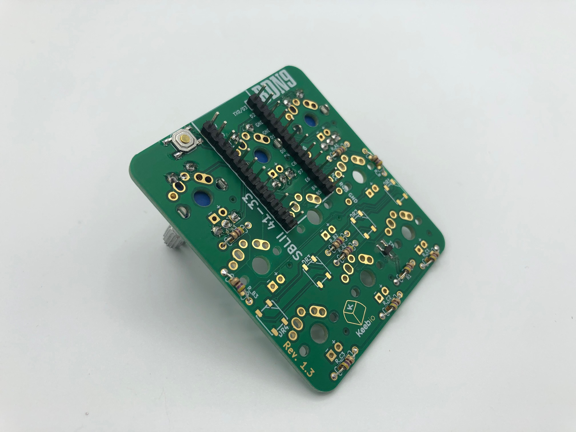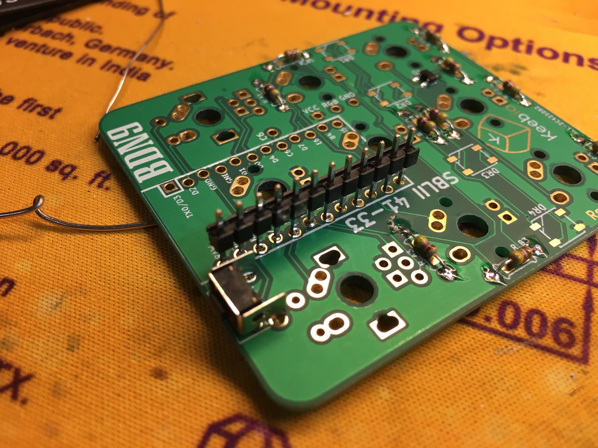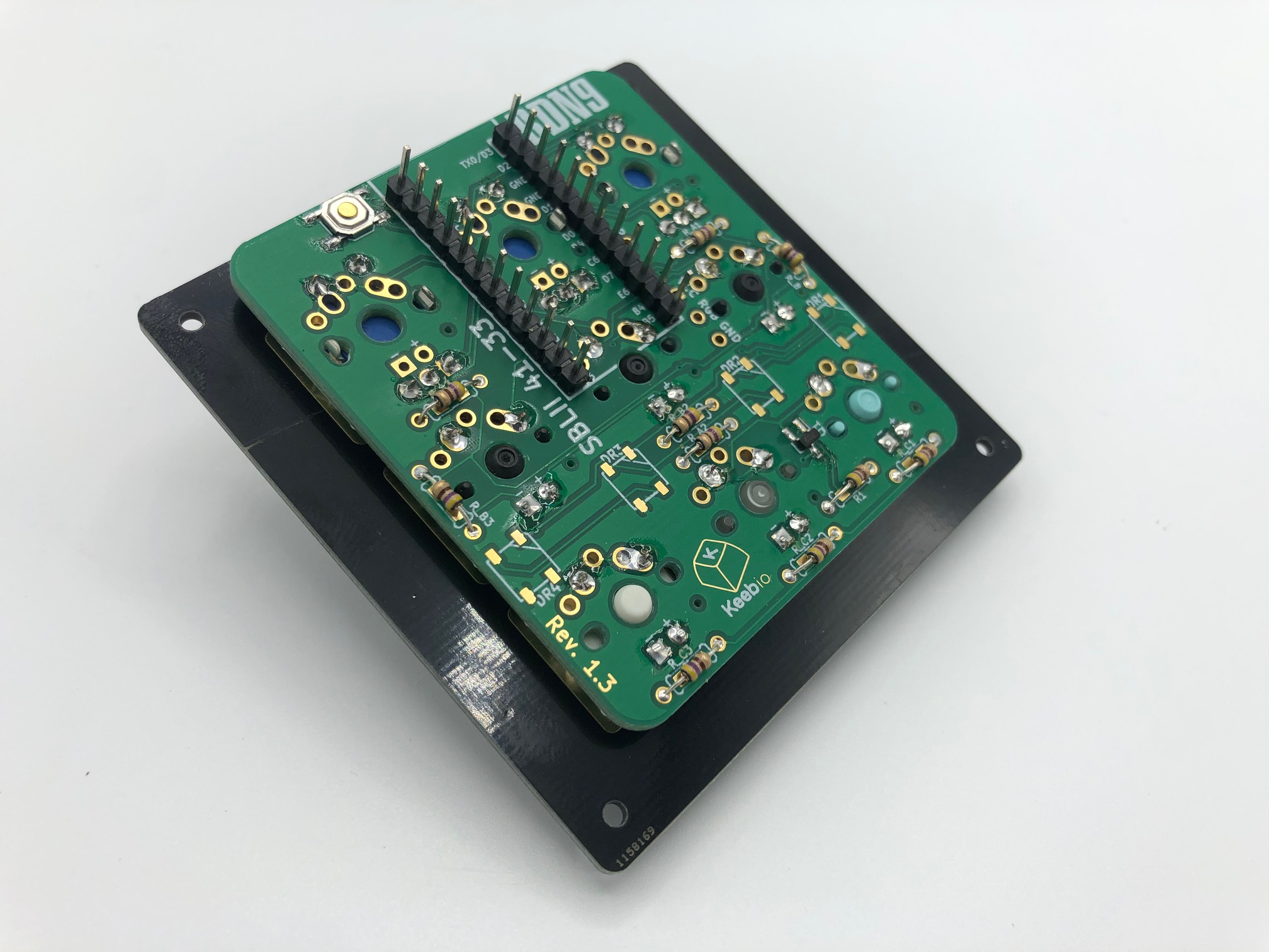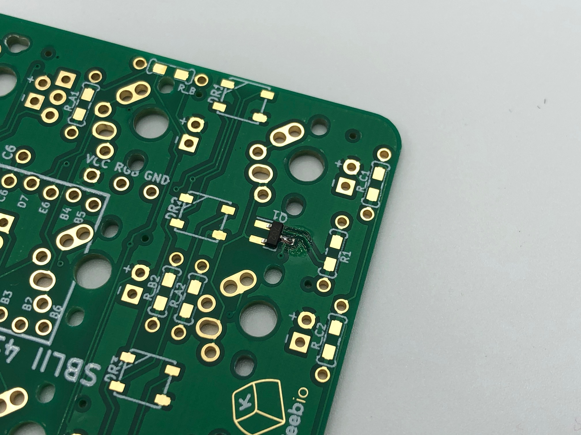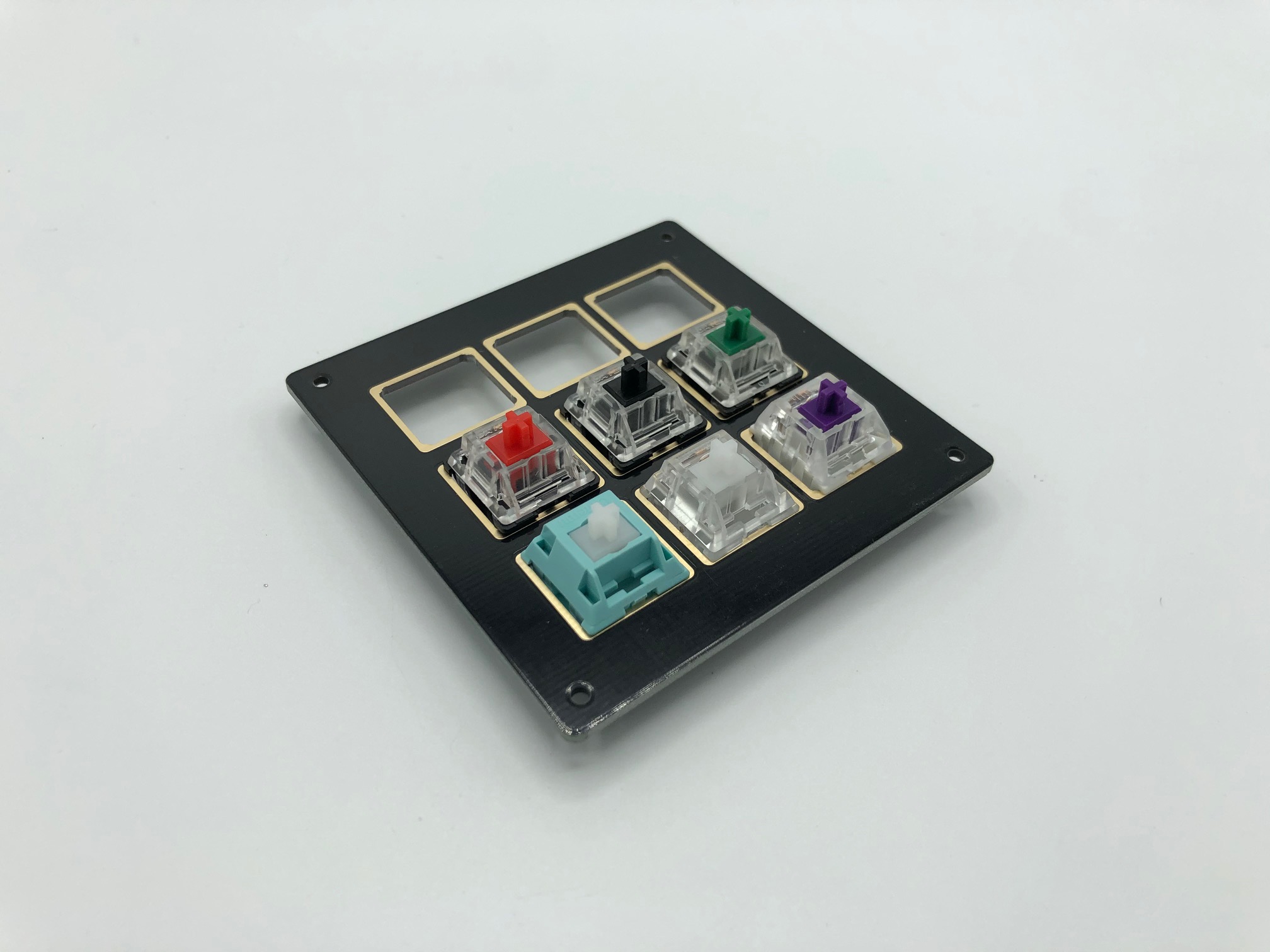 It is difficult to put in the rotary encoders into the PCB pads if the switch plate and switches are already on, so make sure you add the encoders first.