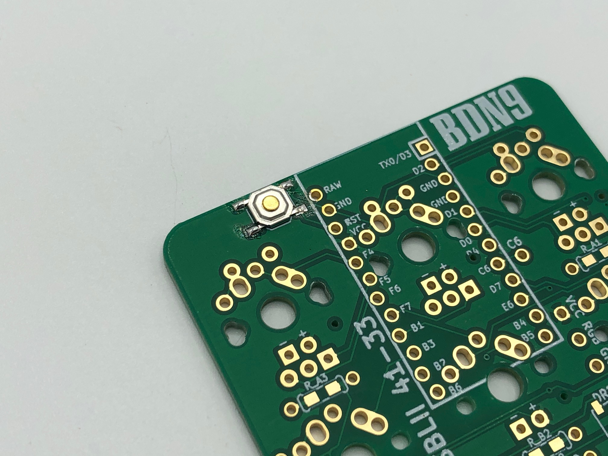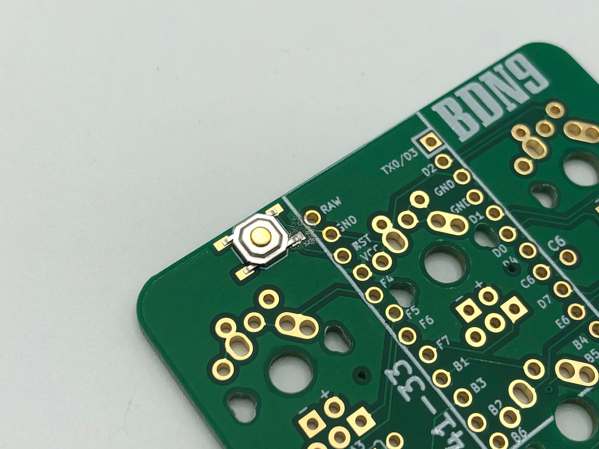 Add a bit of solder to one pad of the reset switch location on the PCB.