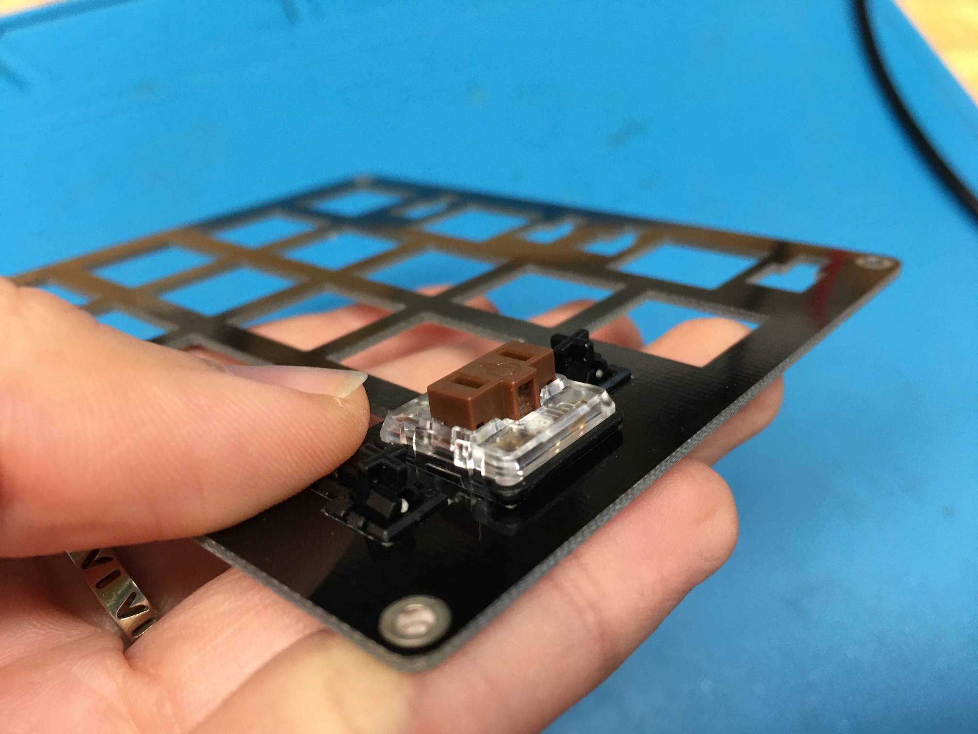 When you're done, the plate, stabilizer, and switch setup should look like this: