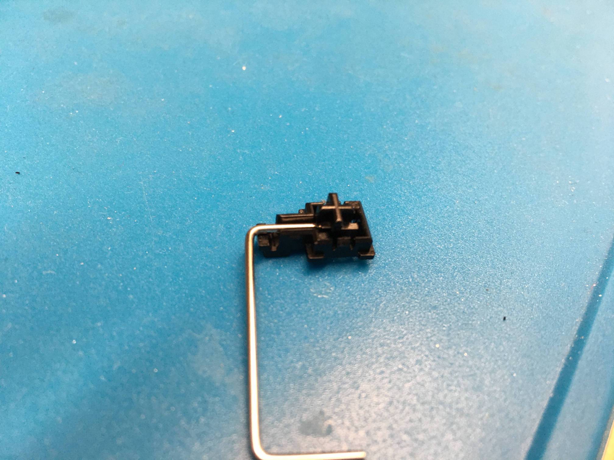 Time to add the metal bar piece. This part is fiddly, so don't worry if it takes a few tries. Push the bar legs into the notch opening on the small piece, and nestle it into the groove that looks like a J.