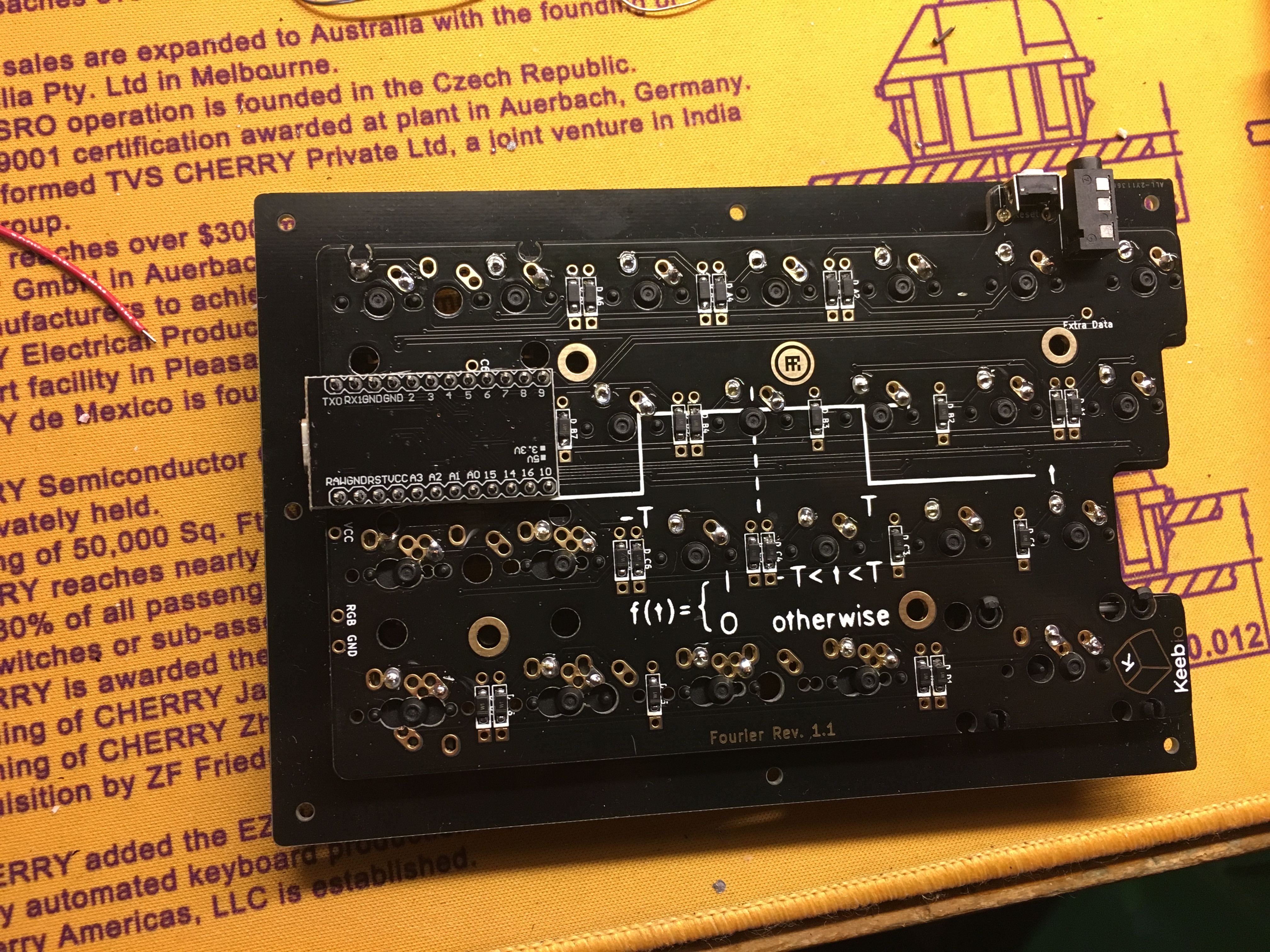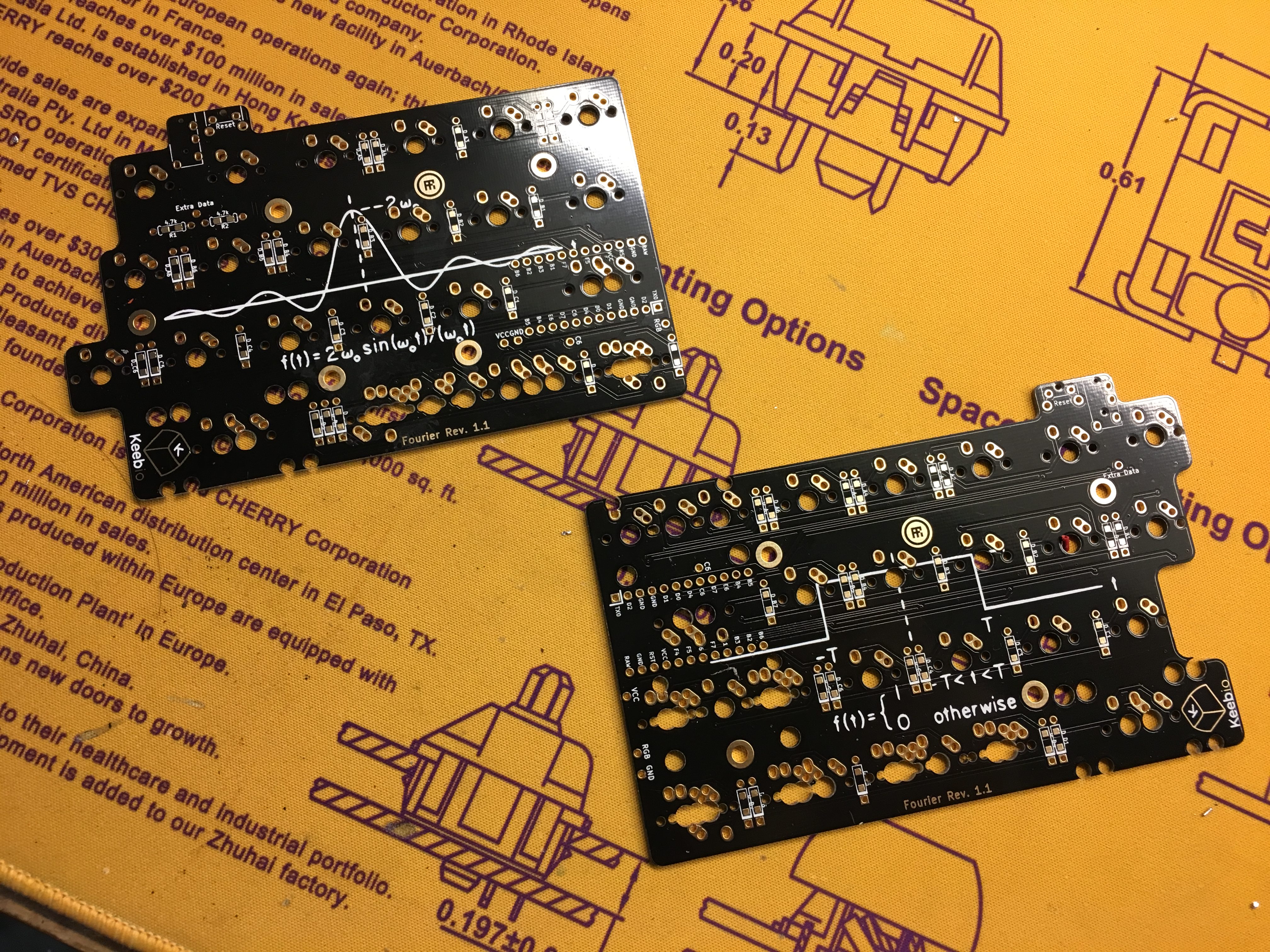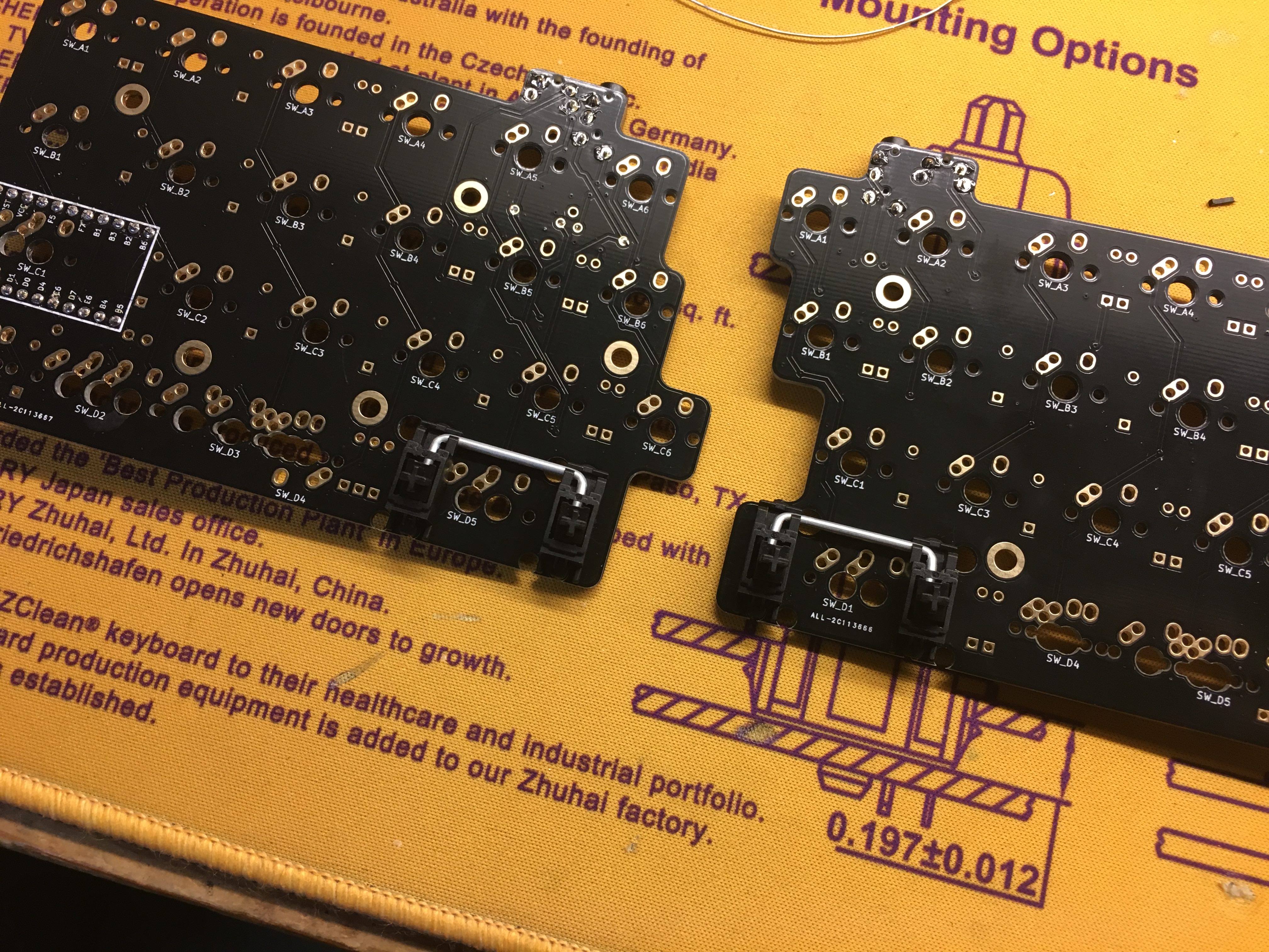 Grab your PCBs. Pictured bottoms up -- left is on the left, right is on the right.