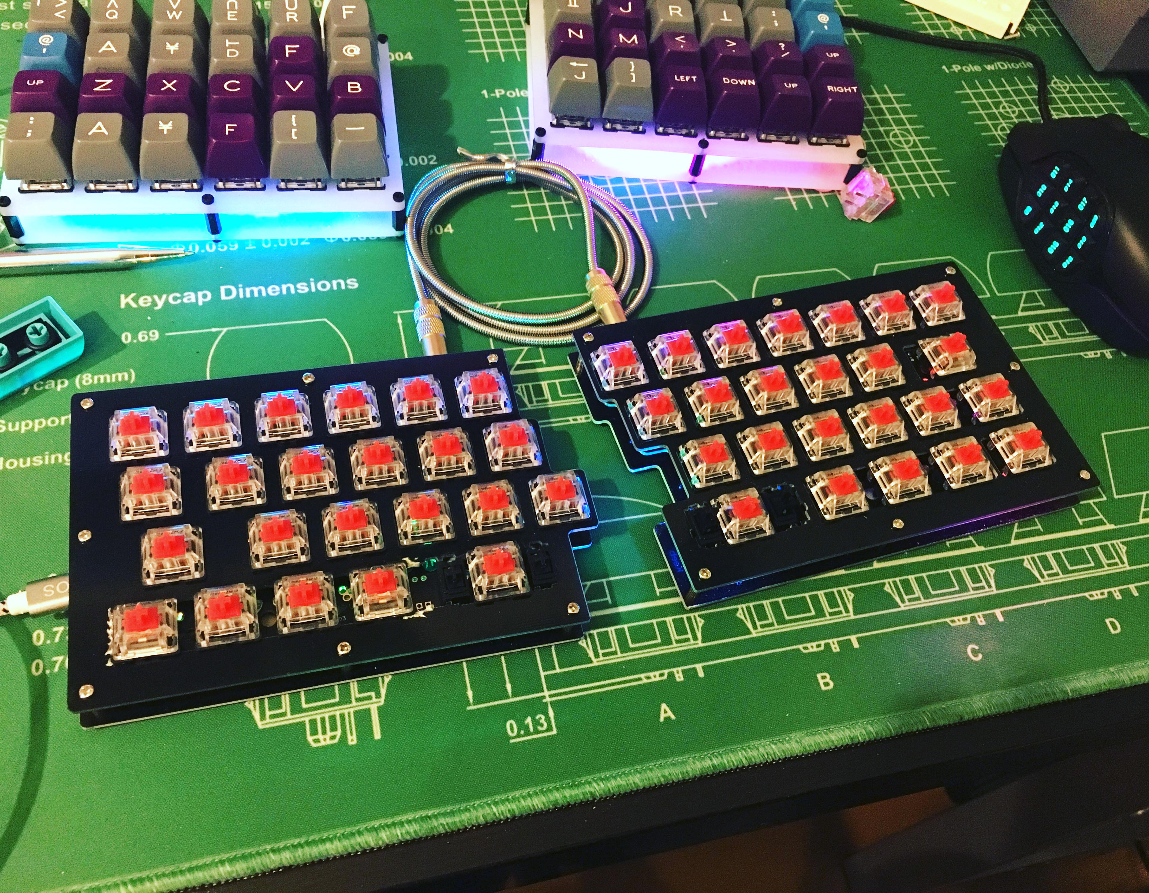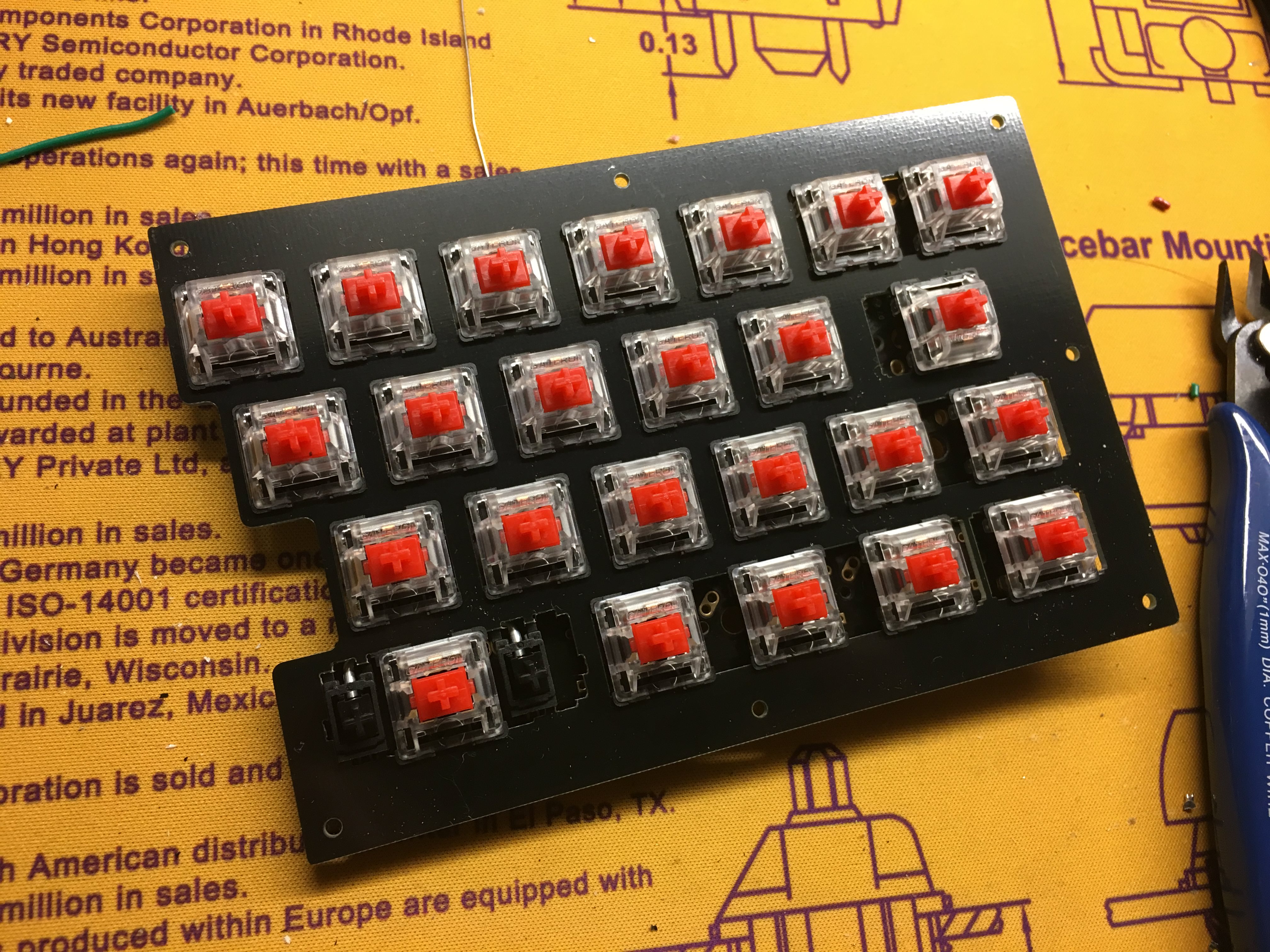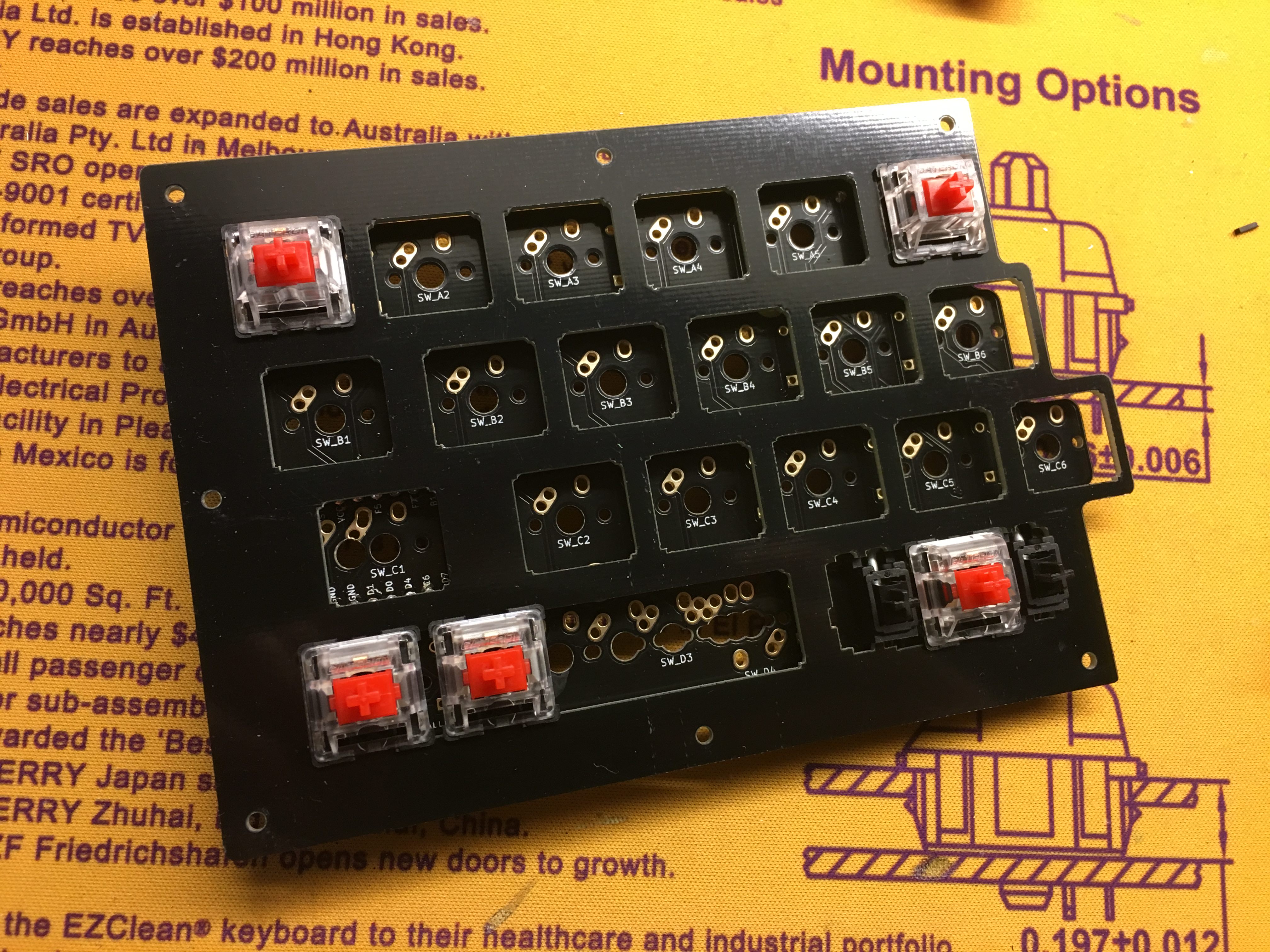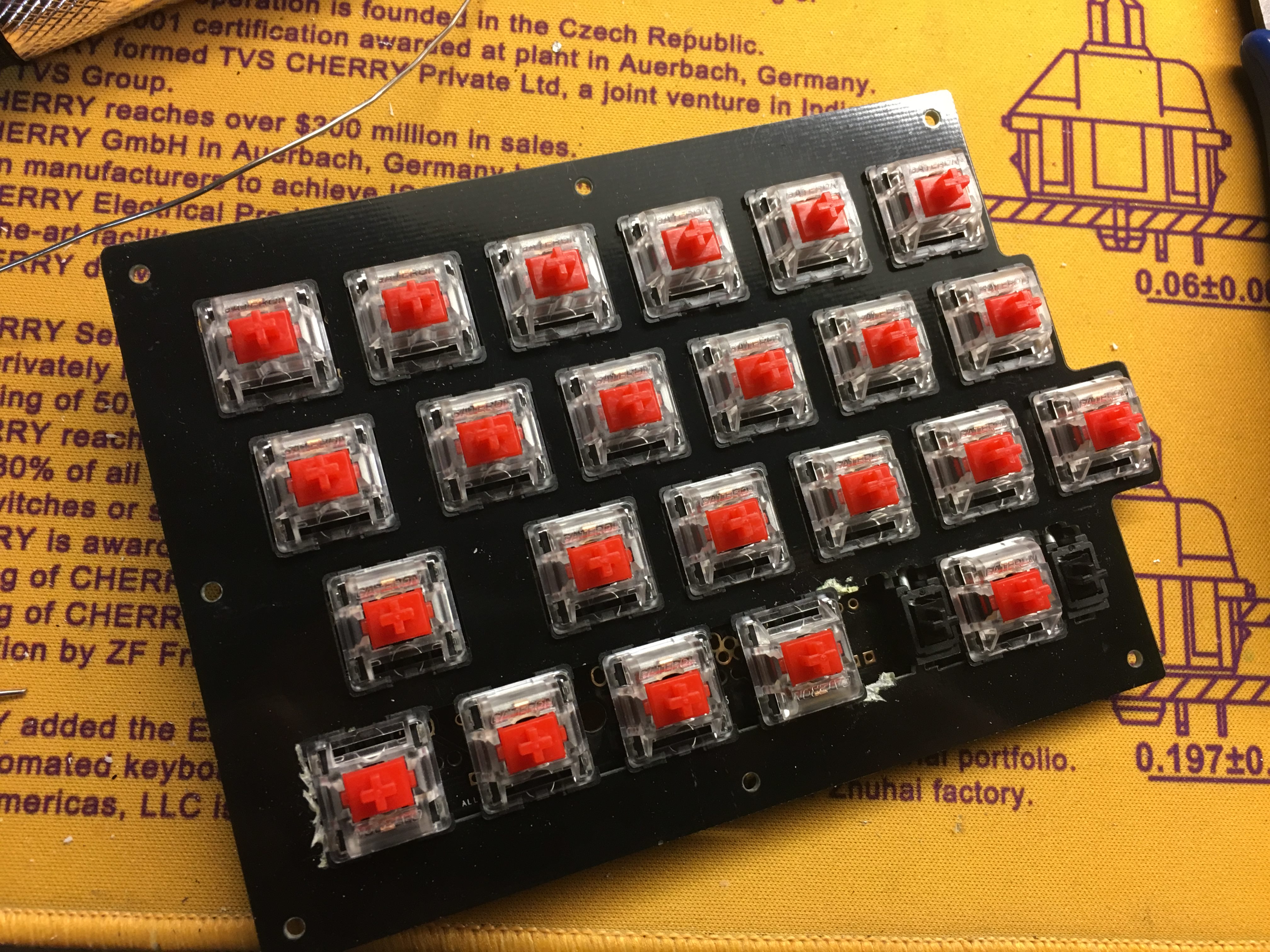 Due to the multiple layout options, it may be helpful to put keycaps on the switches to make sure everything is in the correct slots.
