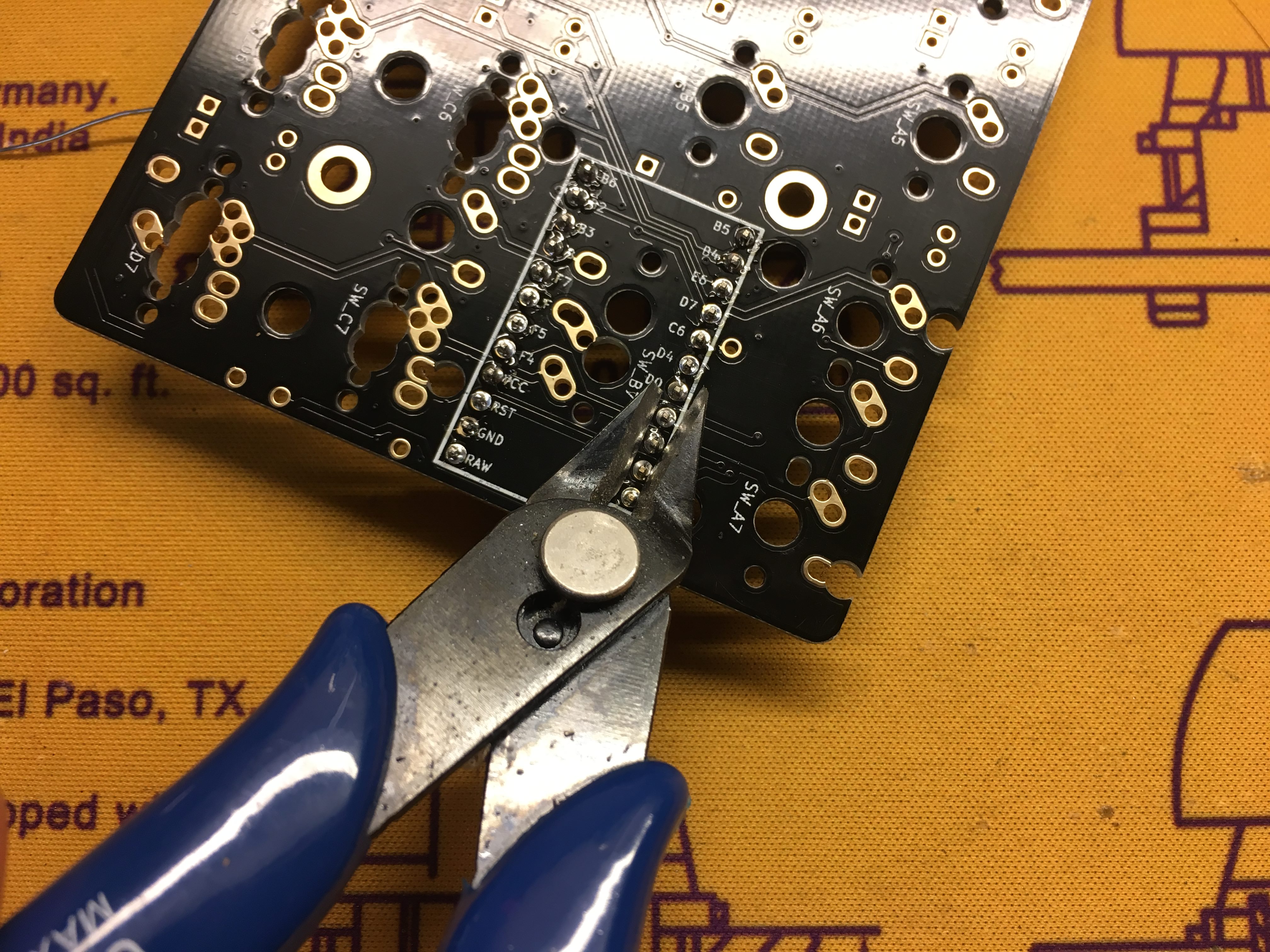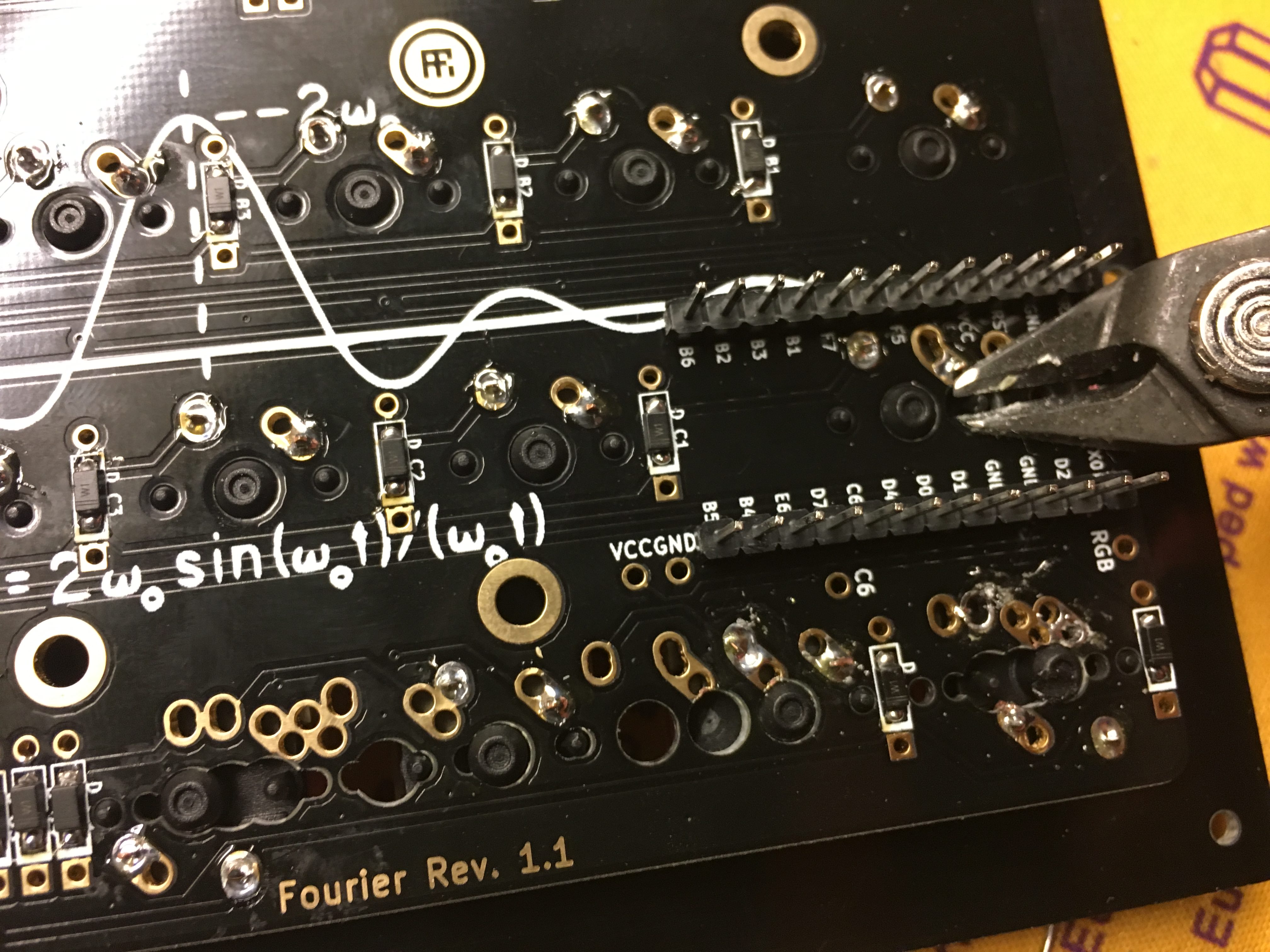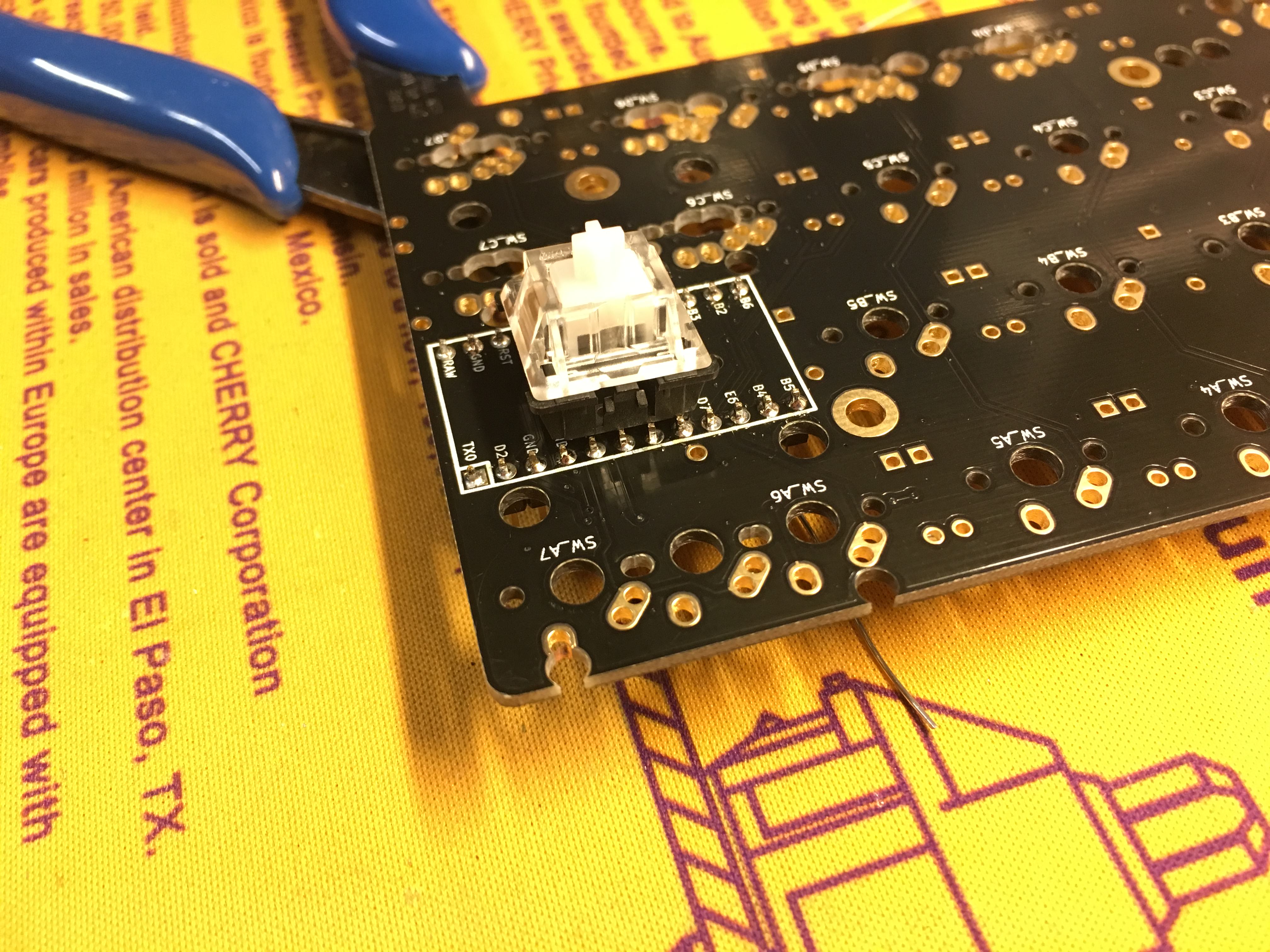 To make sure that the switch pins don't touch the Pro Micro, clip them flush with the PCB.