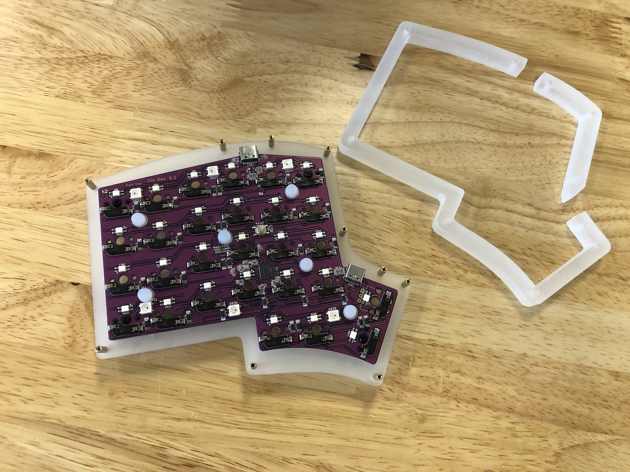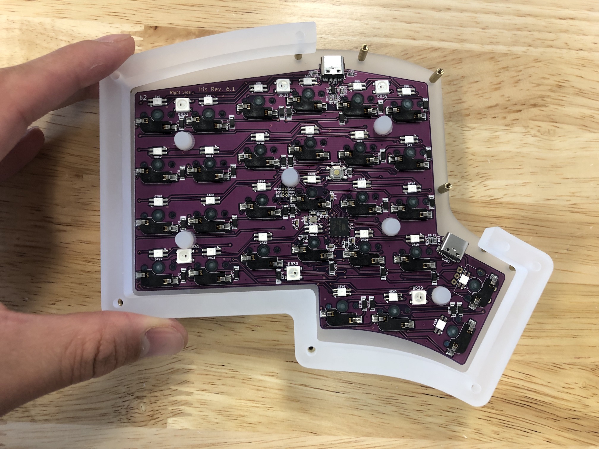 Because a hotswap socket can be damaged by inserting a switch incorrectly, don't attempt to insert switches with bent pins into the hotswap socket, as that can push the socket off of the PCB and damage it.