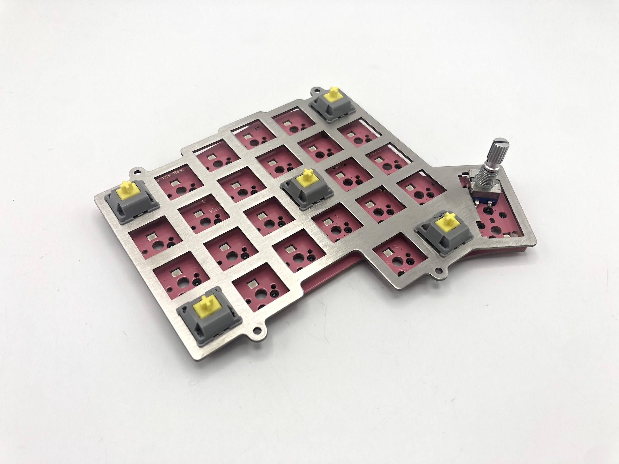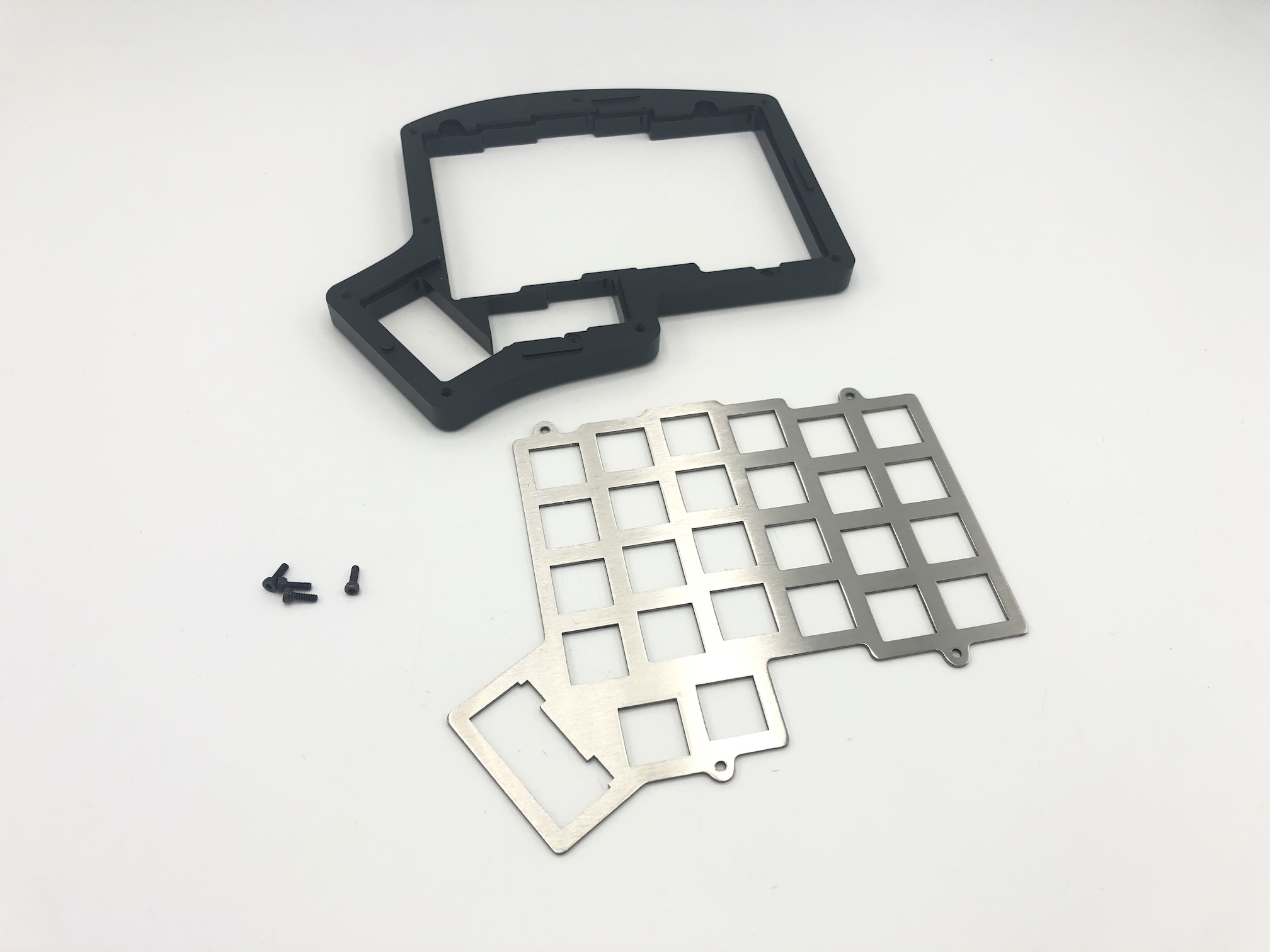 Place the switch plate into the top part of the case and screw it in. If using the o-ring bumpers for burger mounting, you don't have to screw it in fully tight, as you can leave it a bit loose to allow for some flex while typing.