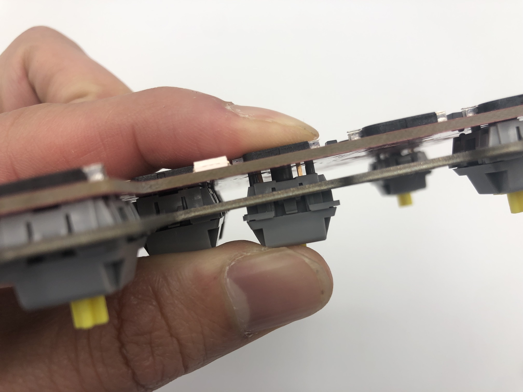 Then push down the PCB onto the bottom of the switch, while pressing on the top of the switch, so basically, you are squeezing the PCB and the switch together.