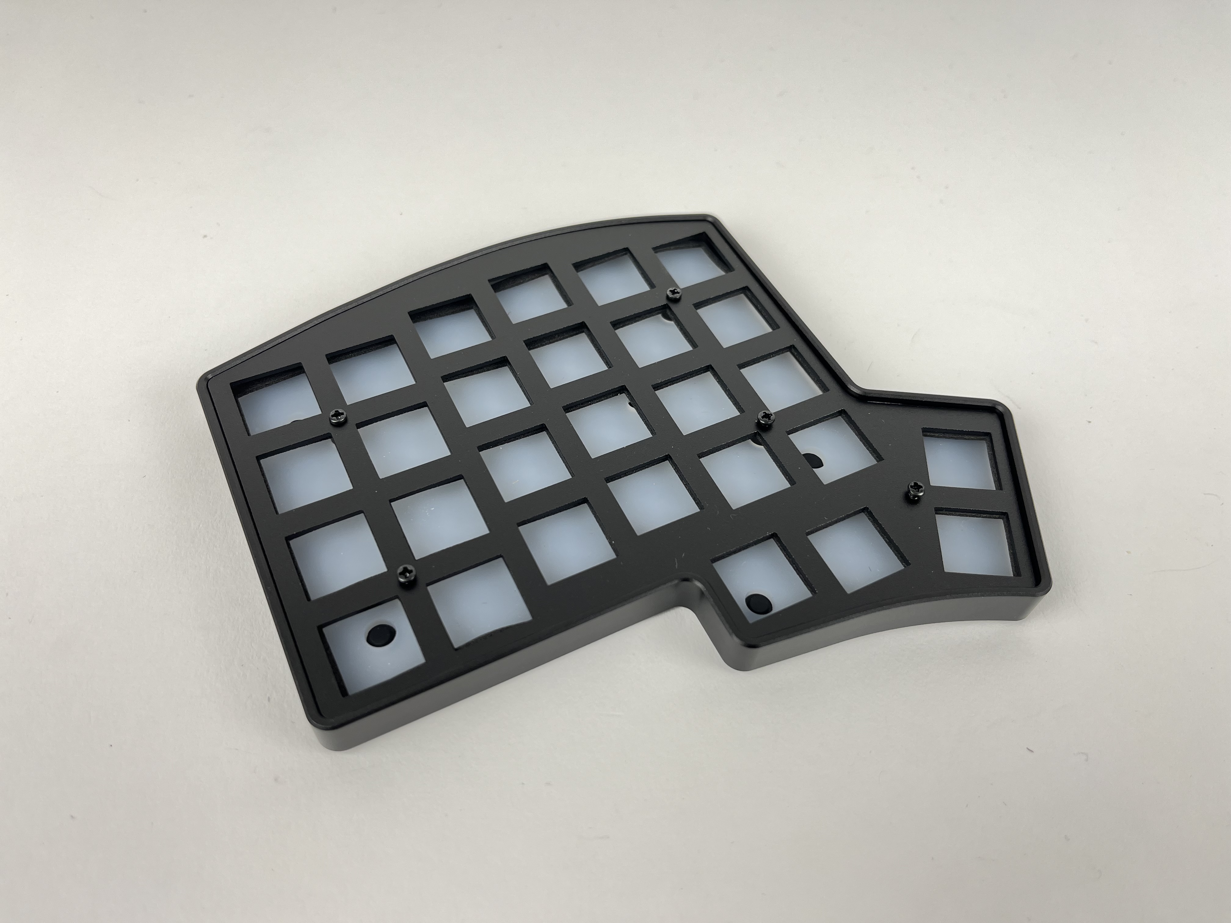 For the 3D-printed version of the case, there is no foam support piece for the switch plate, as the printed switch plate has been made thicker to replace the foam piece.