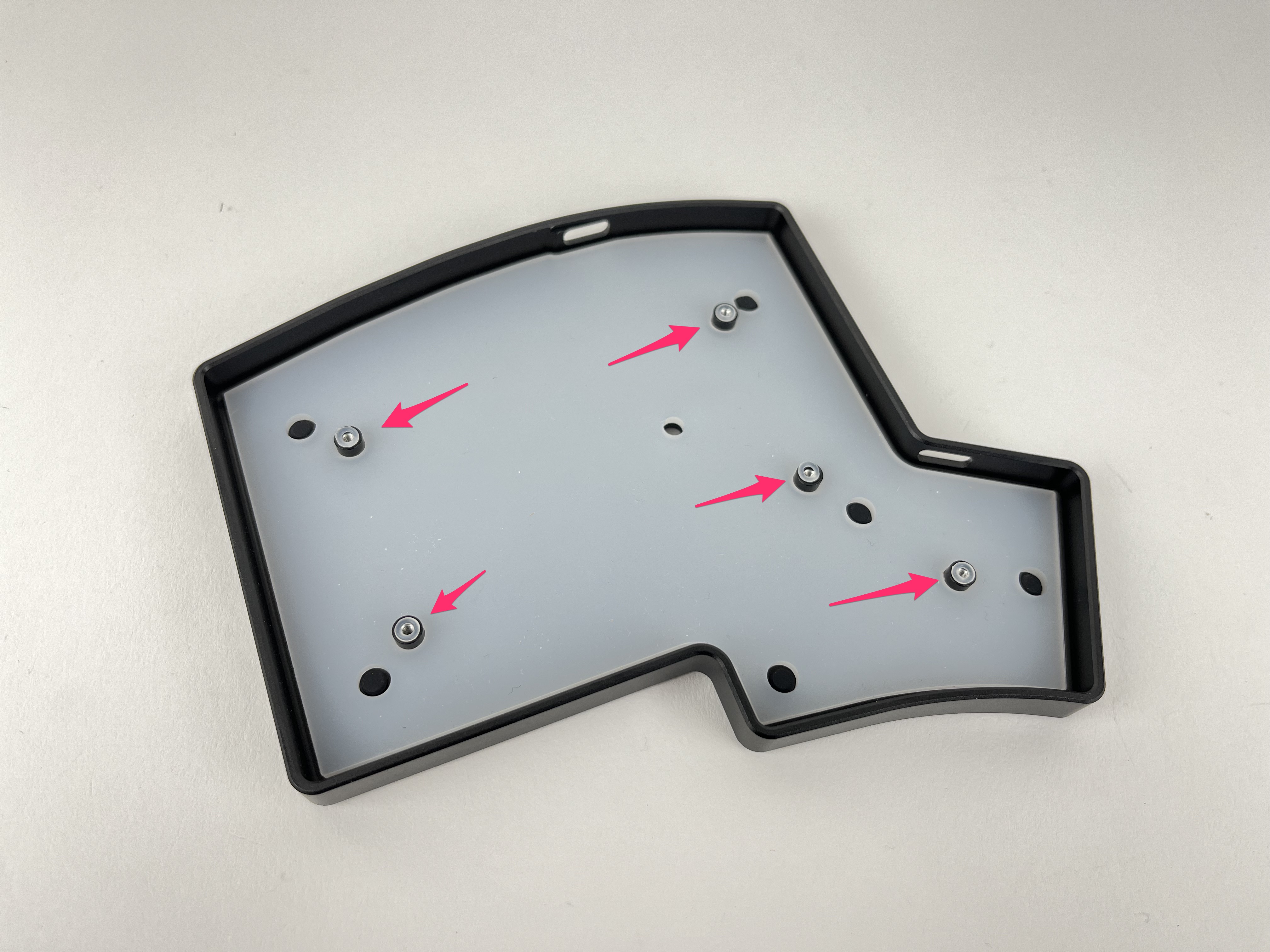 (Optional) Place an o-ring over each of the mounting points. This will provide some cushion between the top portion of the build from the tray bottom of the case.