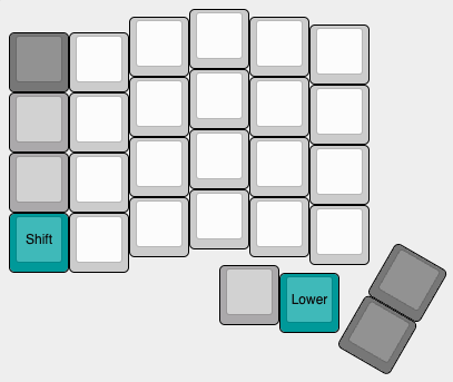 QK_BOOTkeycode to reset the keyboard to allow it to be reflashed without needing to physically press the reset button on the PCB. The default way of usingQK_BOOTis by pressingLower+Ron the left half orRaise+Delon the right half as shown below: