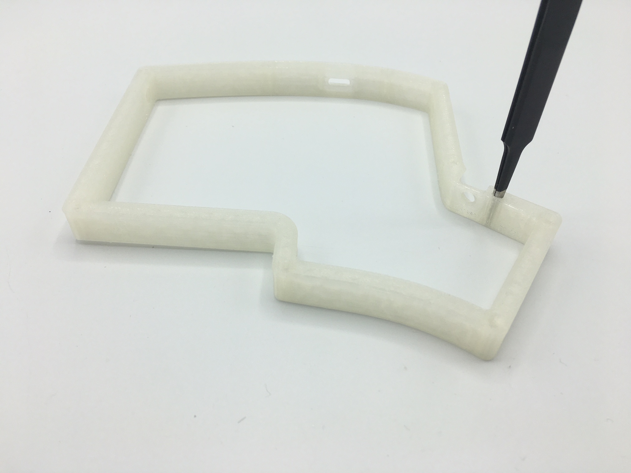 3D printing is a beautiful thing. It also tends to need a little care after printing. To remove any debris that might be left in the holes for your standoffs, take your tweezers/pointed tool and gently pivot it inside the opening.
