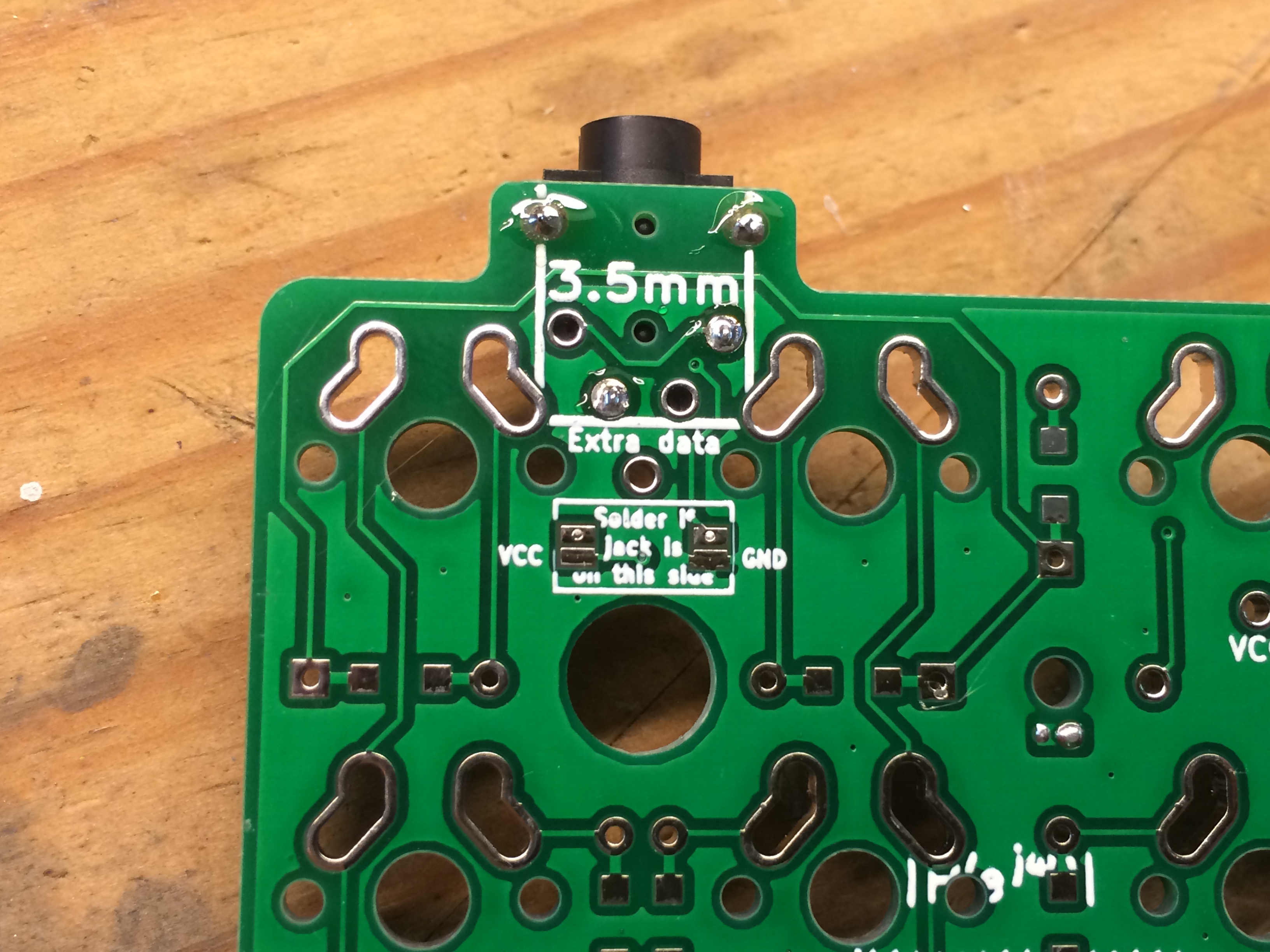 Starting with Rev. 1.4, the TRRS jack has been changed to a slimmer one and the PCB has been designed to not need TRRS jumpers, making the build easier. There are no solder jumpers anymore.