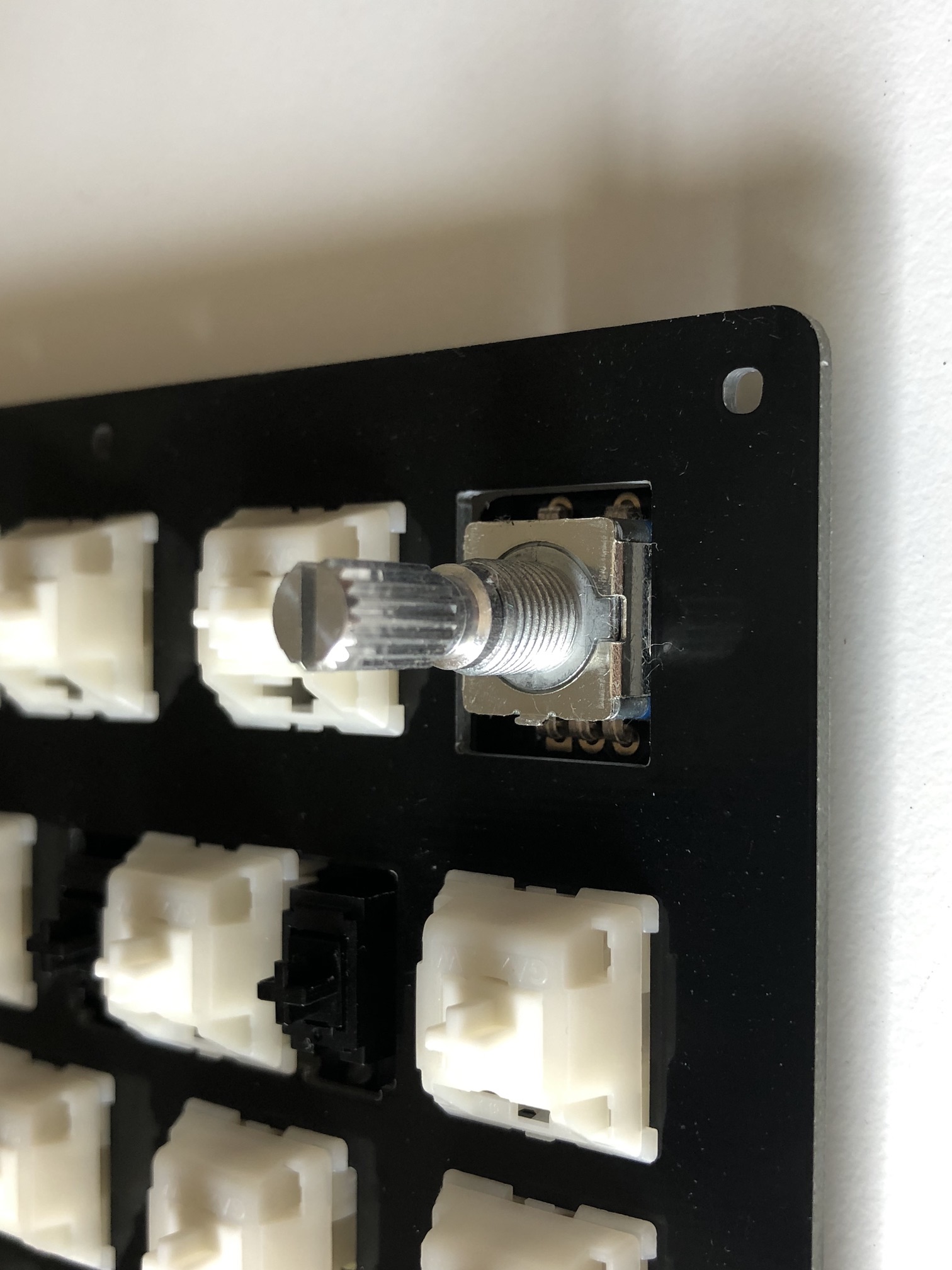 This step can be done after installing the switches. For the prototype plates, the encoders had to be installed first, but for the plates available on the store, the switch cutouts are now large enough to allow the encoders to be installed later.