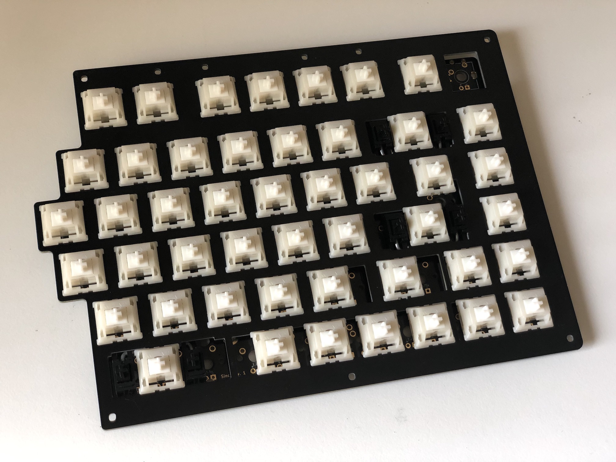 Add switches into the switch plate. It's a good idea to add switches to the corners first and then solder them before installing the rest of them: