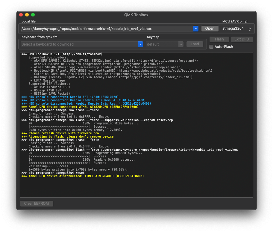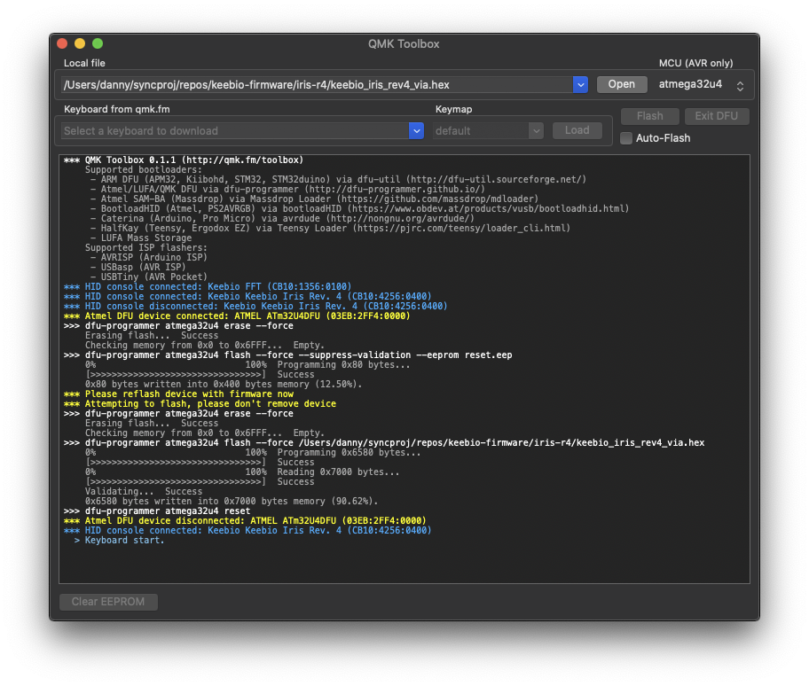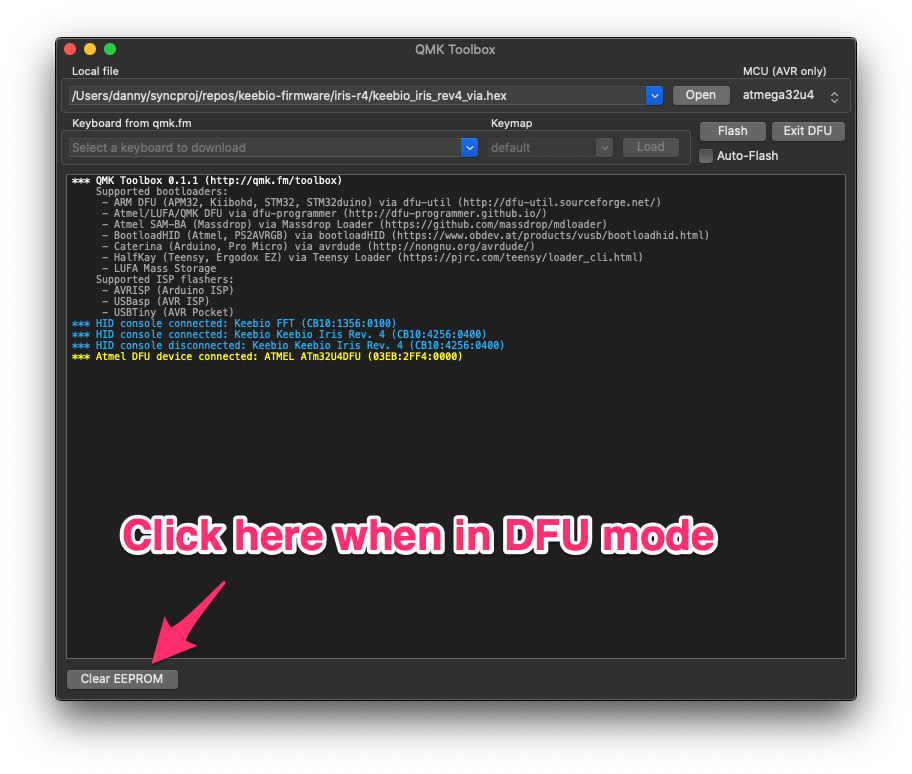 After your keyboard is in DFU mode, as indicated with the yellow text, click on Clear EEPROM at the lower-left.