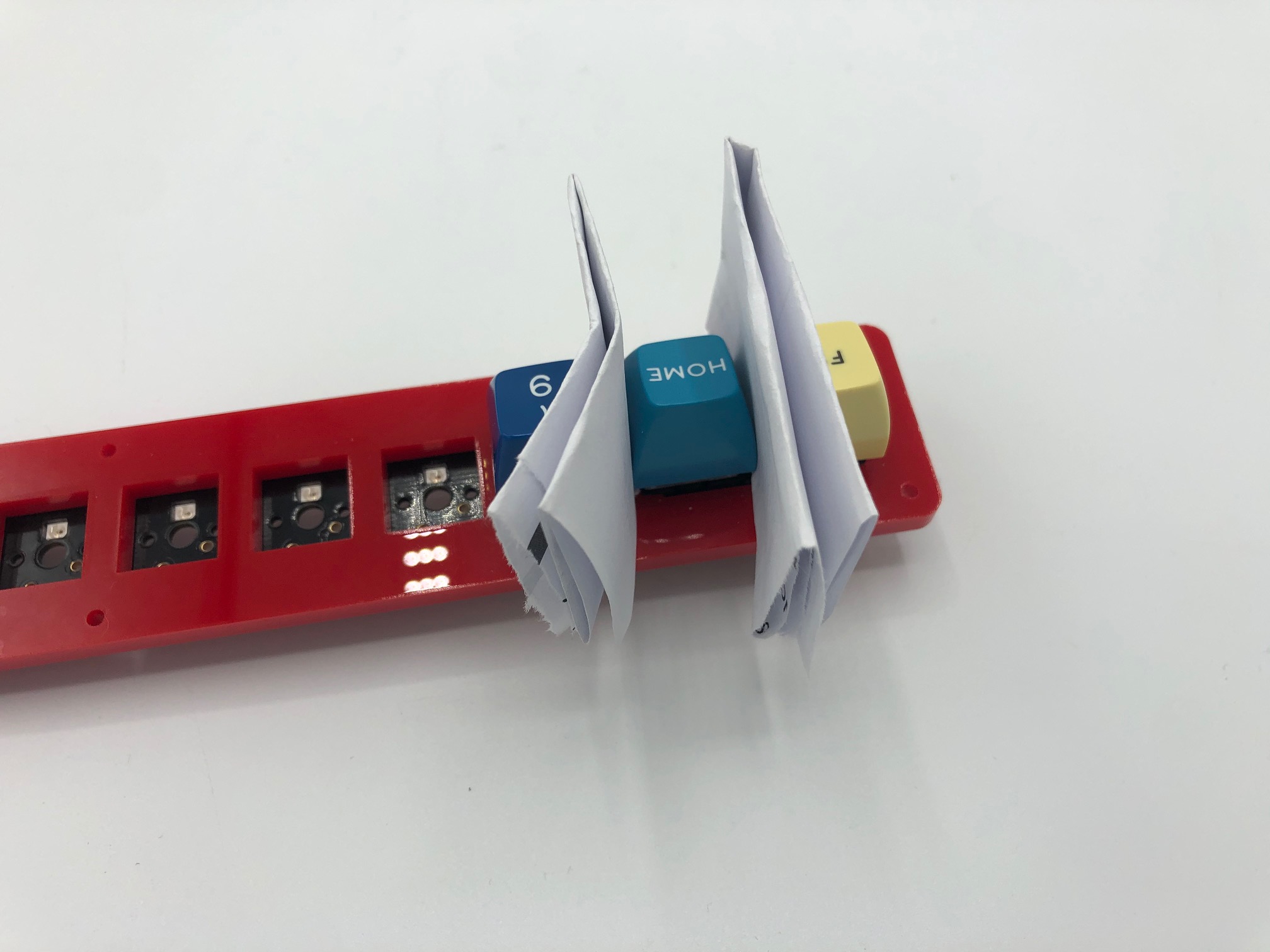 Another way is to put keycaps on and wedge folded up piece of paper in between the keycaps.
