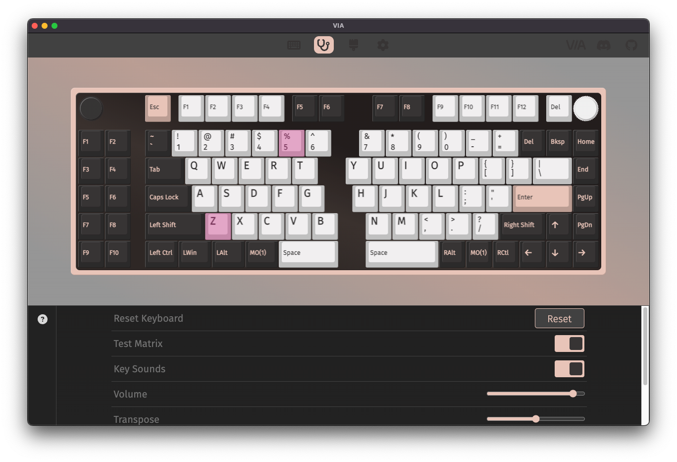 KEY TESTERtab - If your keyboard PCB has VIA support, then you can also test the keyboard matrix to check for keys that don't register, like